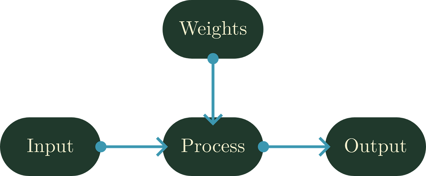 Artificial neural networks are, in the simplest of analogies, a series of interconnected gateways. Modeled after biological neurons, these systems consist of inter–linked layers of these gateways, which deterministically forward a signal to neurons in the next layer according to trained weights7. While most of these networks are feed-forward, and remain aligned with the IPO model, there is an important distinction that must be explained: The weights that are used by each neuron are trainable, and once trained are then used statically through the processing of the input.